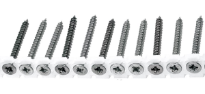 Spaanplaatschroeven op band voor automatische verwerking. Deze professionele spaanplaatschroeven zitten in hoge kwaliteit kunststofband voor een storingsvrije verwerking, zijn voorzien van een Pozi aandrijving en zijn verzinkt, geel verzinkt of in RVS verkrijgbaar. Daarnaast ook een groot aanbod in gipsschroeven op band. Geschikt voor gebruik op alle gangbare merken bandschroefmachines.
