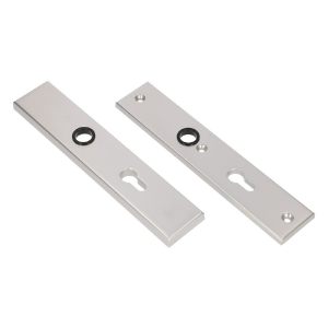 Rechthoekig model, aluminium geanodiseerd. Afmeting schild 251x50 mm. Garnituur bestaande uit een buitenschild van 12 mm dik en een binnenschild van 8 mm dik. Met blinde bevestiging van binnenuit d.m.v. drie metaalschroeven M6x53 mm.
