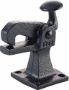 Gietijzer, vuurverzinkt. Met plaat, voor vloerbevestiging met opvangoog. Opschroevend. Voor poorten tot 100 kg.