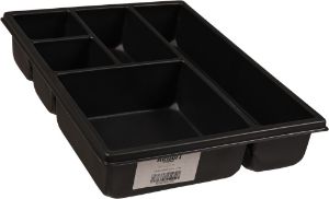 ABS kunststof. Stapelbaar en eenvoudig te koppelen en te ontkoppelen. Maximale dekselbelasting van 90 kg verdeeld over het complete dekseloppervalk, draaggewicht van 60 kg vulgewicht, puntbelasting van 3 kg d.m.v. valtest op deksel en valbestendig tot 2 m.