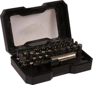 31-delige set, 1/4" bits met lengte van 25 mm, in kunststof houder.