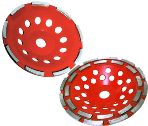 Gediamanteerde slijpkop voor gebruik op haakse slijpmachines en betonschaven voor het slijpen van grote oppervlakken beton, natuursteen, vuurvaste steen enz. Door de plaatsing van de gediamanteerde segmenten op de buitenrand wordt een agressief slijpvermogen verkregen.