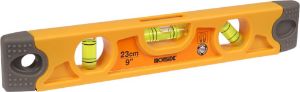 Torpedo model, kunststof, schok- en stootbestendig, 3 libellen in plexiglas blokjes, met magnetische strip. Meetnauwkeurigheid 0,5 mm/m.