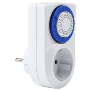 Met dagprogramma, vaste ruiters, 48 schakelmomenten per dag mogelijk, kleinste schakeltijd 30 minuten, maximaal 16 Amp. ( 3680 Watt). Met kinderbeveiliging