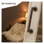 Een grijze deurgreep Bau-Stil op rond rozet. Deurgrepen zijn te gebruiken op zowel enkele als dubbele deuren en zijn ook steeds vaker te zien op voordeuren. Deze deurgreep wordt per stuk geleverd en heeft een hoogte van 300 mm en een boormaat van 250 mm.