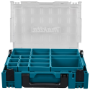 Makita Mboxen, CoolMboxen en gereedschapskisten. Handige Mbox organizer met transparant deksel. Deze koffer kan naar eigen wens ingedeeld worden door middel van de 13 meegeleverde inzetbakken in diverse maten. Uiteraard is deze Mbox ook stapelbaar met reguliere Mboxen. Voorzien van handgreepvergrendeling en handig doorzichtig deksel zodat verbruiksartikelen snel te herkennen zijn.