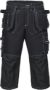 2 met CORDURA® versterkte loshangende zakken, 1 met 3 kleine zakjes en gereedschapslussen en 1 met extra zak