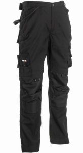 Multi-pocket waterafstotende broek met vaste spijkerzakken, verstelbare taille, taillelus met sleutelring, horizontale afneembare velcro taillelus, verticale velcro taillelus, 2 zijzakken, GSM-zakje, 2 dijbeenzakken met 1 beenzak, meterzak, pennenzakje, kniezakken, meshouder, hamerlus, 2 achterzakken, uitneembare zoom, EN ISO 13688:2013, EN ISO 15797:2004/AC:2004