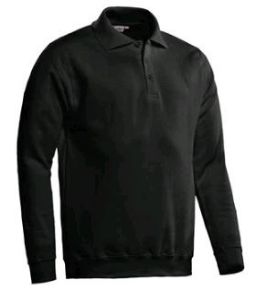 Polosweater, 280 gr/m², 50% katoen / 50% polyester, binnenzijde geruwd, unisex, polokraag met 3-knoopsluiting, tailleband en manchetten met elastaan.