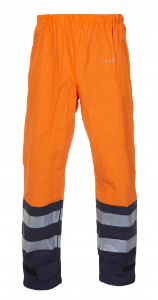 Regenbroek bicolour, elastisch in taille, verstelbare broekspijpen met klittenband.